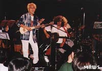 | フル・バンドでのあがたナンバー・アンコールは「ロンリー・ローラー」。山田さんのヴォーカルとコーラス隊とのコンビネーションも絶好調で、まさにみんなで歌える楽しいラスト・ナンバーにはピッタリ!! 廣岡篤哉さんのキーボードと、トランペット、ヴァイオリン、ギター、リズム隊とが軽やかなバンド・グルーヴを生み出して、爽やかでノリノリな良い雰囲気を生んでいる。そして曲はそのまま途切れることなく「シリコン・ボーイ」へと移ってゆく。この曲もサビは会場内合唱状態で、ボルテージは高まる一方である。間奏のギター&ヴァイオリンのユニゾン、そしてメタルチックなギター・ソロ〜ヴァイオリン・ソロという観どころもばっちりでしたね。派手なアクションがたたって、石原さんのベースのチューニングはズレまくっていたのはご愛嬌。山田さんコンタクトによる怒濤のようなエンディング・キメの嵐を経て、ついに20周年記念ライヴも幕を下ろす・・・かのように思われたが・・・。