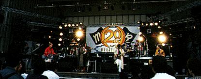 噛み締めるように告げる慶一さん。 長い沈黙を破った壮大なプレリュードがその幕を開ける。 『Who's gonna cry?』拭うどころか、涙を溢れさせてくれた1991年。 重厚なコーラスに続いて宴の賑わいが届けられる。最後の晩餐でマスターを務めたAndy Partridge氏。96年の今、野音に彼の声が響き渡るのを不思議な気持ちで聞いていた。 すかさず僕の頭の中では"Who's gonna die first?"が鳴り出す。叩きつけるようなコー ラスに扇情的なディストーションギターのリフ。何度身体で浴びたことだろう。擦り減 ることのないこのCD。そうだ、接着剤が弱いぞこのCDトレイ。何度貼っても剥がれ てしまい、ボロボロになってしまったジャケット。いいんだ、もう1枚買ったから。中 古で見つけた"最後の晩餐"は、驚くなかれ、100円のプライス・タグをつけていた。 喜ぶべきか、はたまた悲しむべきか。 さあ、またしても肩透かしをくらってしまう。フェイド・インしてきたのは『幸せの洪 水の前で』だ。この時間旅行がA1グランプリだということ、そのひとまずの終点が近 いことを知らされる。 ![]() 1992年のツアーでもオープニングを飾った曲。絞り出すように言葉を吐いた慶一さ んの姿がオーバー・ラップする。苦しそうな声は変わらない。けれど、目の前の彼は4 年前より若くみえる。特別な祭りだけが持つ高揚感のなせる技だろうか。陰りを潜めた 愛の論理。砕け散る海も、今日は穏やかに両手を広げているようだ。 次なるA1は"PRELUDE TO HIJACKWER"のはず。ここでオーケストラ・サウンドをしたが えつつ、2回目のインターバルに入るものと思っていた。が、またしても予想はあっさ りと裏切られてしまう。一際高い音圧のイントロに続き、武川さんの声が『帰還〜ただ いま〜』を告げ始めたのだ。 朗々としたテノール。気がつけば野音全体を夜の帳が包んでいる。薄明かりの中浮かび 上がる彼の広い肩幅が、つい先日の「夜」を思い出させる。カンテラを片手に、かけが えのない仲間たちに囲まれ唄う姿。あの時の感動(陳腐な表現だが、これ以上の言葉を 僕は知らない)がいきなりフラッシュ・バックしてくる。今日、何度目かのデジャ・ヴ。 今、目の前で告げられた「ただいま」には、あの日の思い詰めたような緊張感は無い。 穏やかな口調は充足感に満ち溢れている。世紀末へ向け、彼らが間違いなく続いていく ことを確信する夜。お互いの無事を祝う、20年目のスペシャル・ナイト。 「ここで2度目の休憩です」 照れ臭そうな慶一さんの声。野音全体が、ホッと息をつく。まだまだ旅は終わらない。 それにしてもここまで19曲。いつもならアンコールも終わり家路をたどるころだ。 すっかり陽の落ちた日比谷野外音楽堂。僕らは静かに高揚している。笑いのとまらない 膝を休めるため、コンクリートの地面に腰を降ろして休もう。 同居人がドーナツを差し出してくれるのだが、空腹感は無かった。いや、わからないと 言うべきかな。身体機能を関知するデバイスにアクセスできないでいるようだ。現実感 の欠如した肉体。知覚回路の一部分だけが妙に研ぎすまされている感じ。 困り果てたのは記憶細胞だ。現在進行形の光景をどう扱うべきか、判断しかねて寝込ん でいる始末。軽い頭痛のような目眩もする。夢かうつつか幻か。ビン底のようにポッカ リと口を開けた空には、月がまだ顔をみせずにいる。高層ビルのコンクリート・ジャン グルと、深緑色に染まる森に囲まれたスペース。擂り鉢状の観客席の底では、数千もの 頭が揺れている。 ここに集っているのは、数え切れない欲望と傷心かもしれない。 |